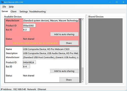 Use usb devices from a remote computer on your LAN. Similar to VirtualHere and USB over Network.
